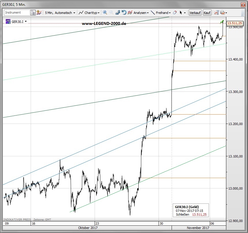 Im 5 Min.Chart ist die starke Unterstützung im Bereich 13.410/435 unübersehbar.